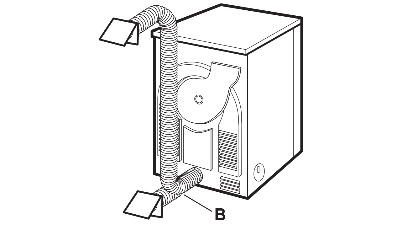 Warning: If the hose is blocked or folded, drying efficiency will be decreased, resulting in longer drying times, higher energy consumption or the heater may stop working.