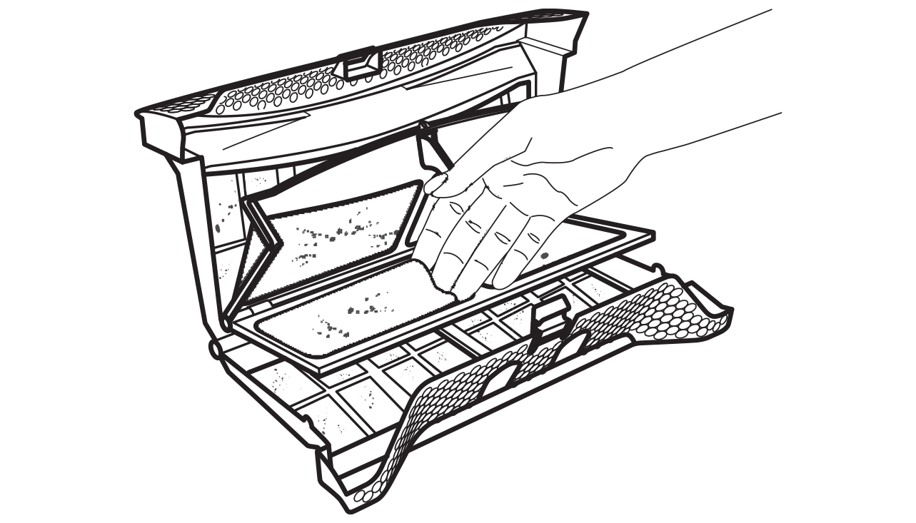 Empty the fluff from the filter into the bin and if necessary vacuum it out.