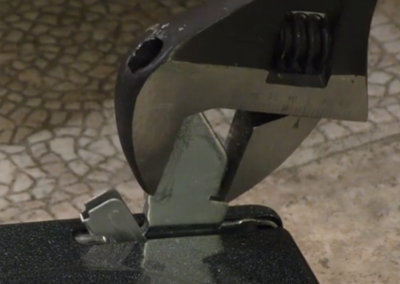 If the hinge snaps back into the closed position after the door has been removed, the hinge arm will need to be leveraged to the open position.