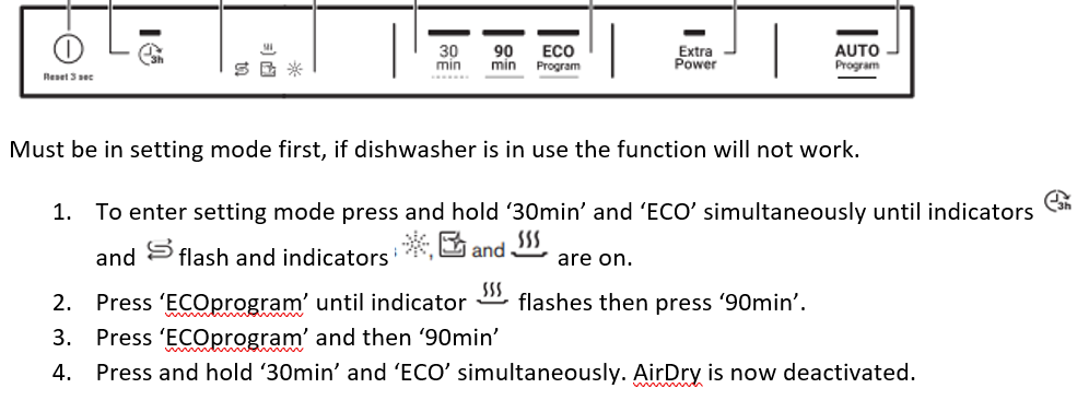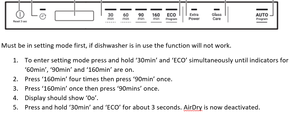 How to deactivate/turn off AirDry/door opens automatically on dishwasher