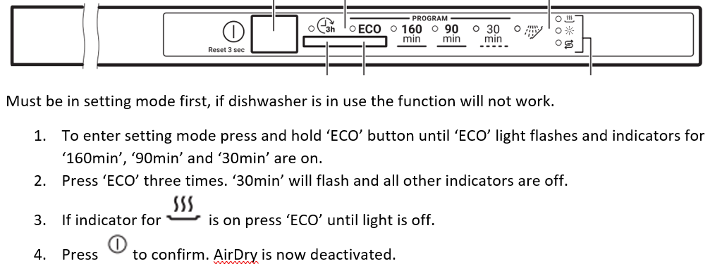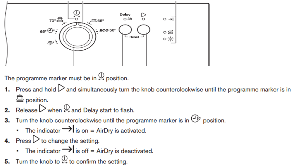 - How to deactivate/turn off AirDry on Zanussi dishwasher