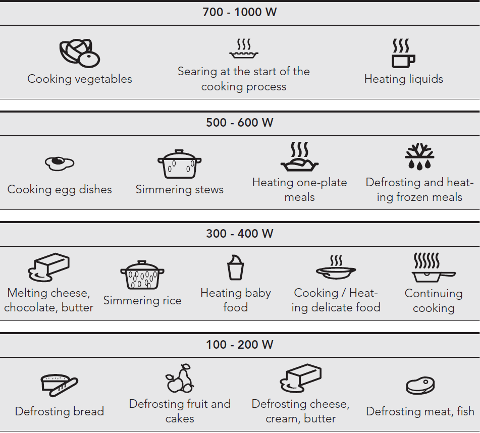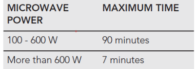 See the below table for MICROWAVE ONLY power level maximum time: