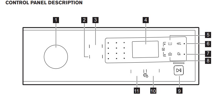 1. Before pressing button 9 (START/PAUSE), it will be impossible to start the appliance.